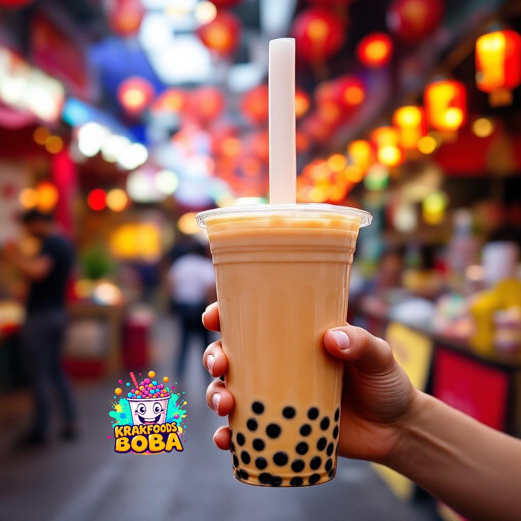 At KRAK Foods, we craft our pearls to deliver the authentic flavor and exact “QQ” chewiness that makes every sip or spoonful a treat. Whether stirred into milk tea, layered in tapioca pudding, or added to creative desserts, our boba brings a unique texture and charm that turns any drink or dish into something special.